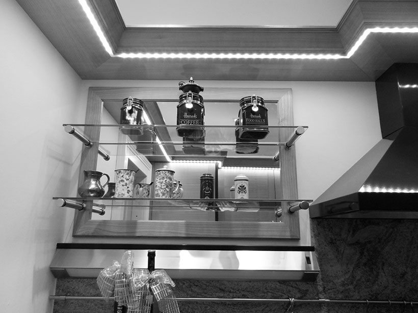 Holzstuck mit LED Beleuchtung, integrierte Abzughaube